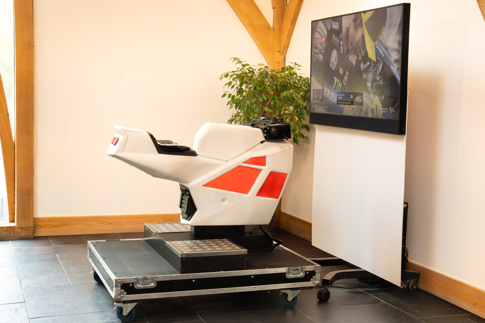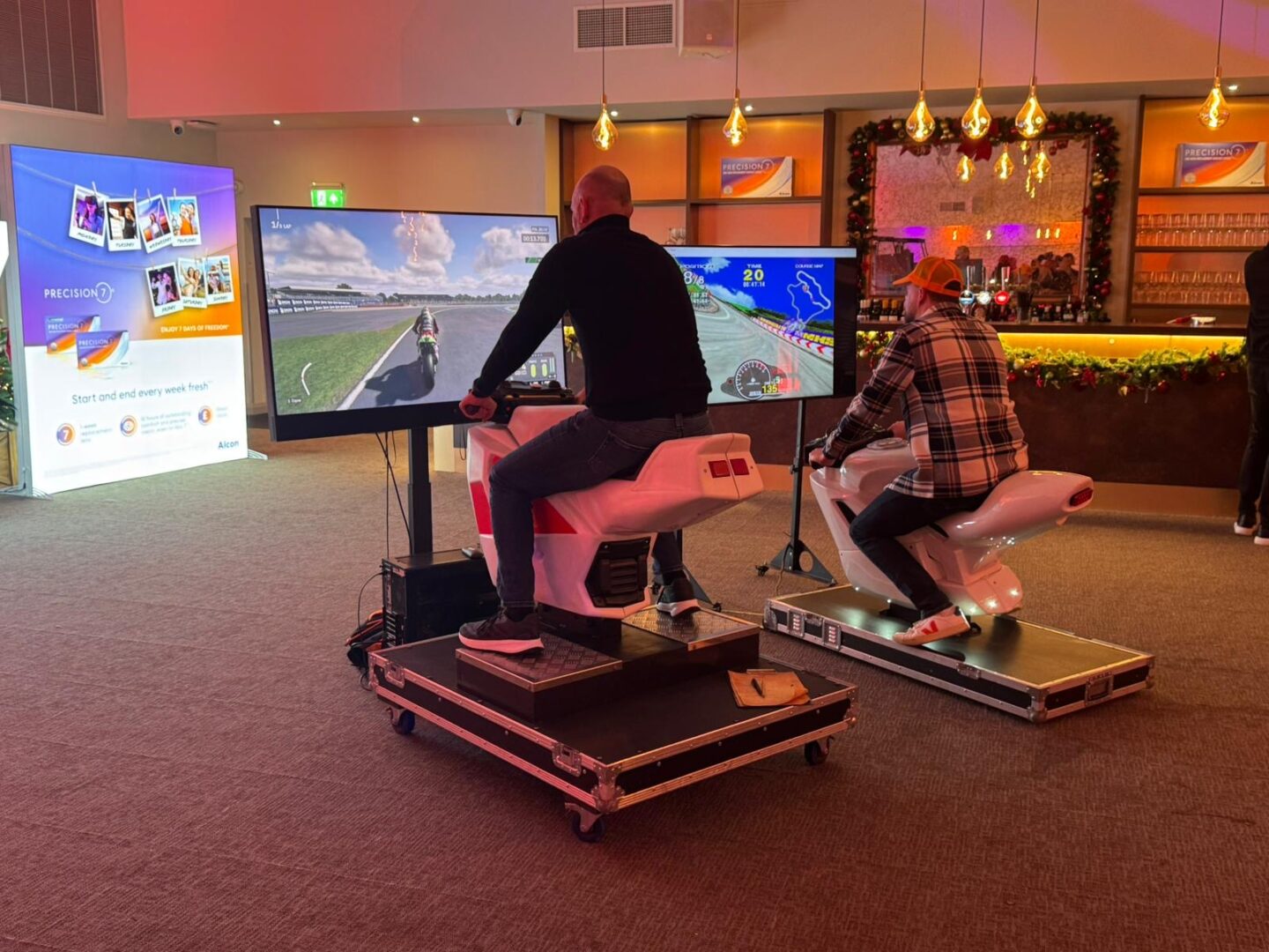 Experience the thrills and speed of motorcycle racing without leaving the event space